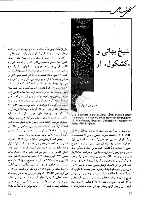 File #16: "معصومیهمدانی and دوینجیاستوارت - 1370 - شیخ بهائی و «کشکول» او.pdf"
