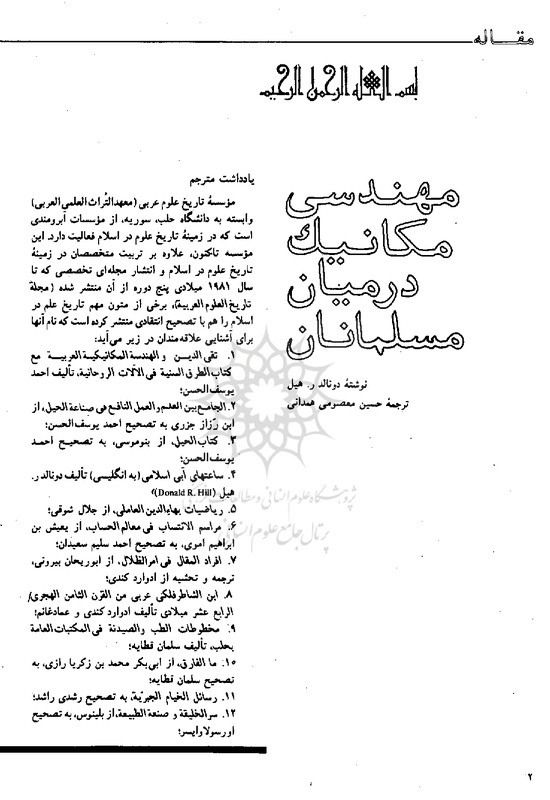 File #18: "معصومیهمدانی and دونالدر.هیل - 1362 - مهندسی مکانیک در میان مسلمانان.pdf"