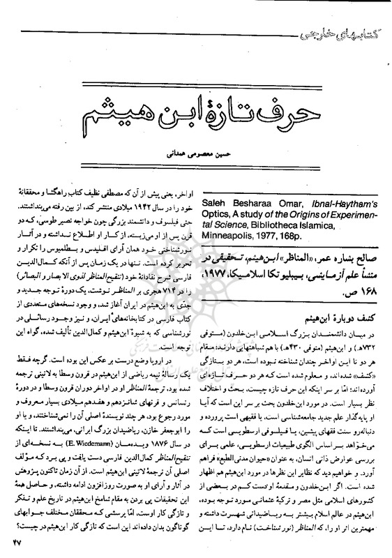 File #19: "معصومیهمدانی - 1362 - حرف تازه ابن هیثم.pdf"