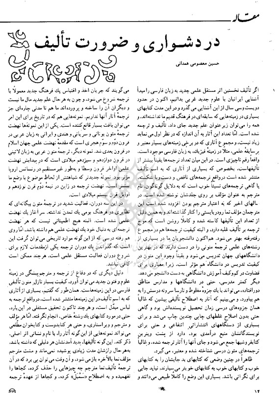 File #32: "معصومیهمدانی - 1366 - در دشواری و ضرورت تألیف.pdf"
