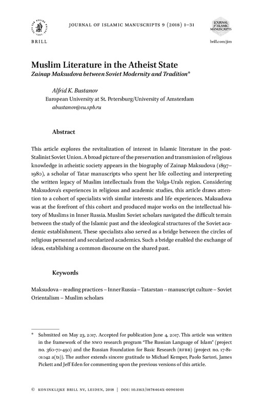 File #187: "Bustanov - 2018 - Muslim Literature in the Atheist State.pdf"